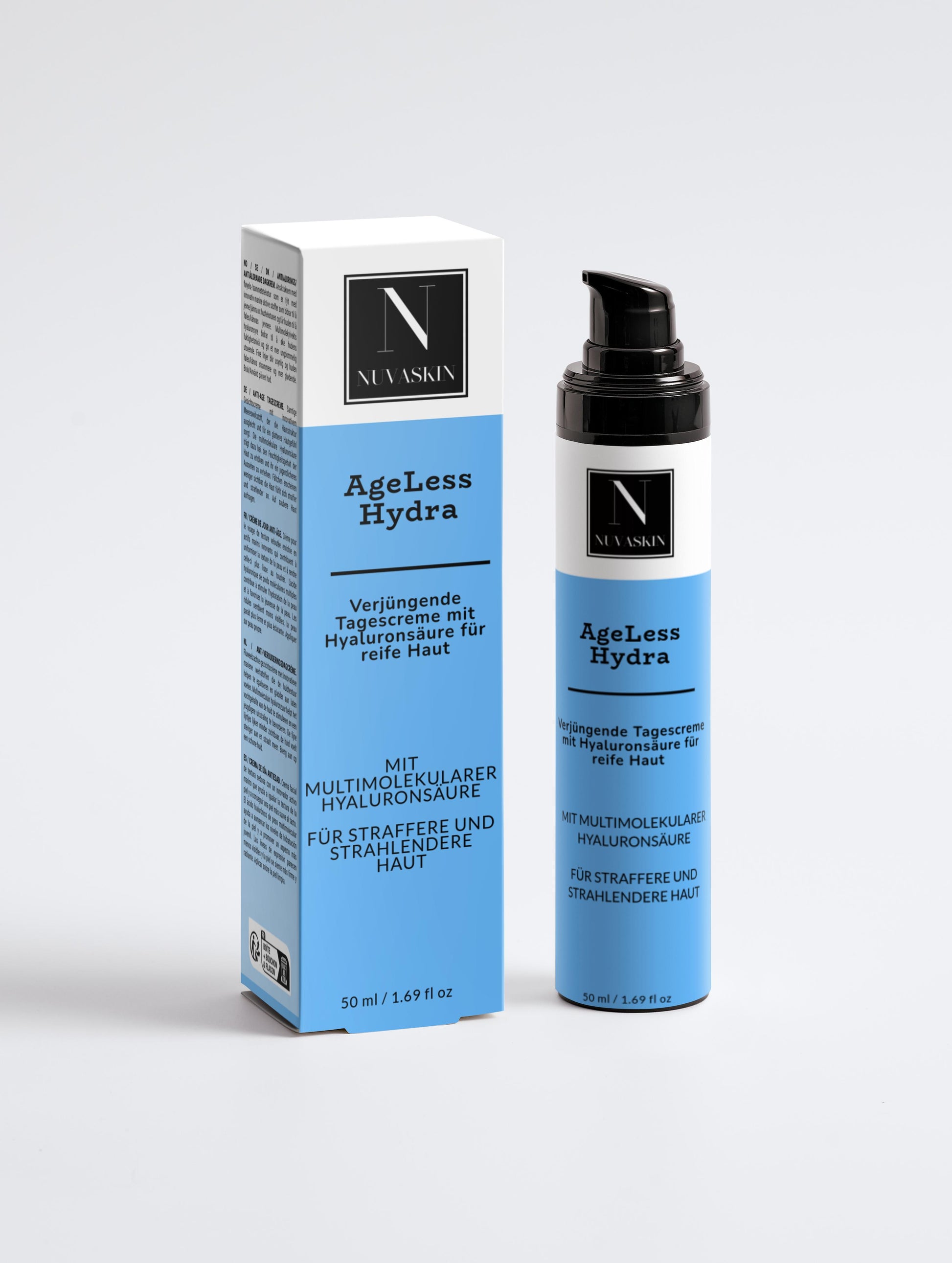 AgeLess Hydra is a luxurious anti-age day cream specially developed for mature skin. With innovative marine active ingredients and multi-molecular hyaluronic acid, it leaves skin feeling smooth and visibly younger-looking. The vegan formula with natural ingredients such as aloe vera and jojoba oil provides intensive care and reduces fine lines.