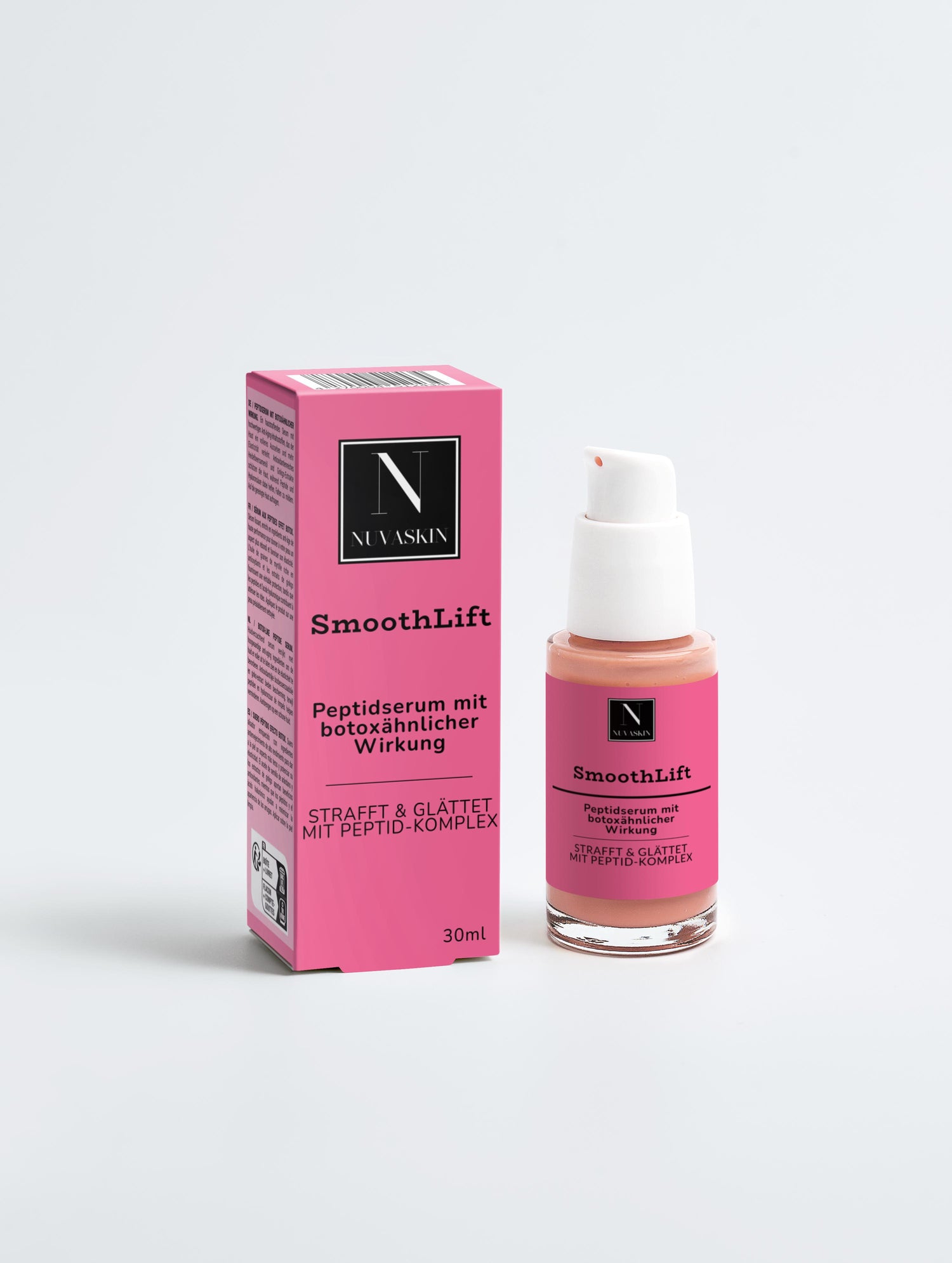 SmoothLift is an innovative peptide serum that visibly reduces wrinkles and enhances skin elasticity. With valuable ingredients like hyaluronic acid and blueberry seed oil, it promotes a fuller, firmer complexion and protects against premature skin aging. SmoothLift has a muscle relaxing effect effect expression lines.